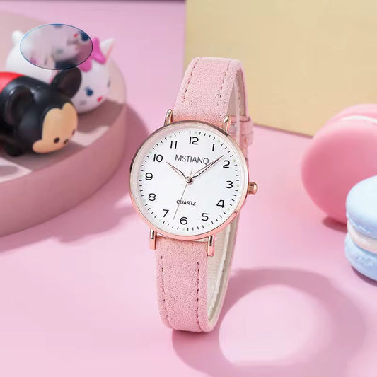 Ladies' Frosted Surface Digital Watch Fashion Simple Retro Small Round Leather Belt Woman Wrist Watch